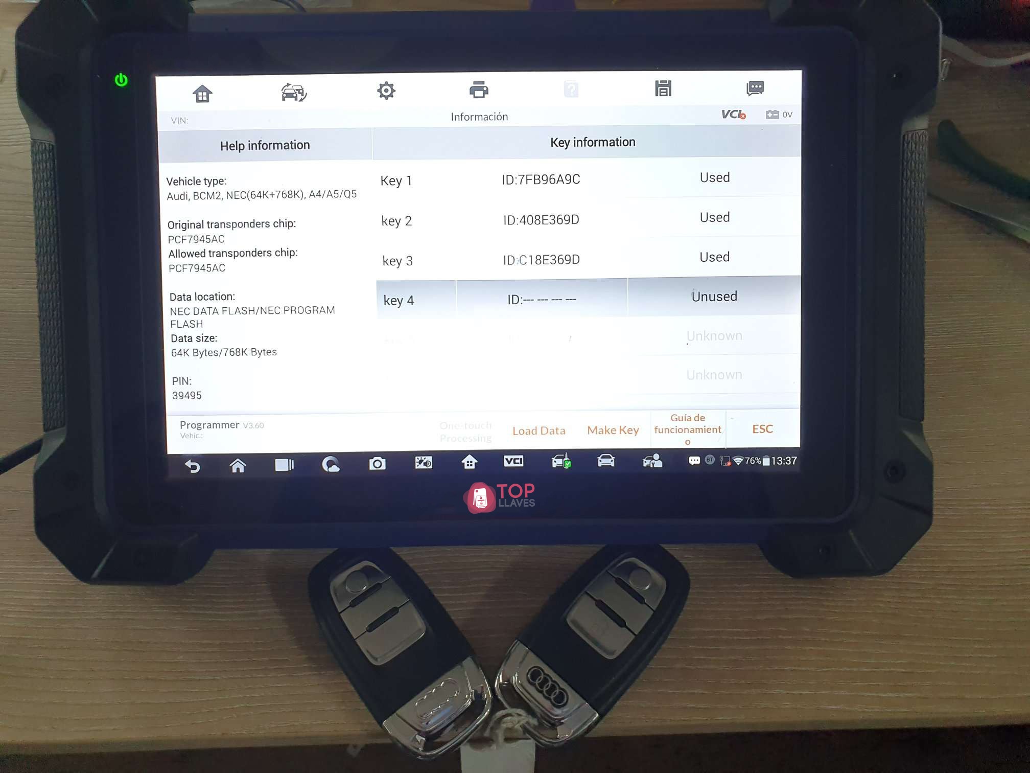 En este caso hemos realizado recuperación para una Audi Q5, nuestro cliente quería un duplicado de su copia ya que ha perdido la original.