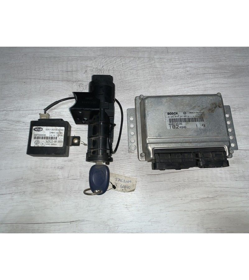 Este conjunto se compone de centralita motor 0281010341, inmovilizador 46744908 y bombín de arranque con una llave.