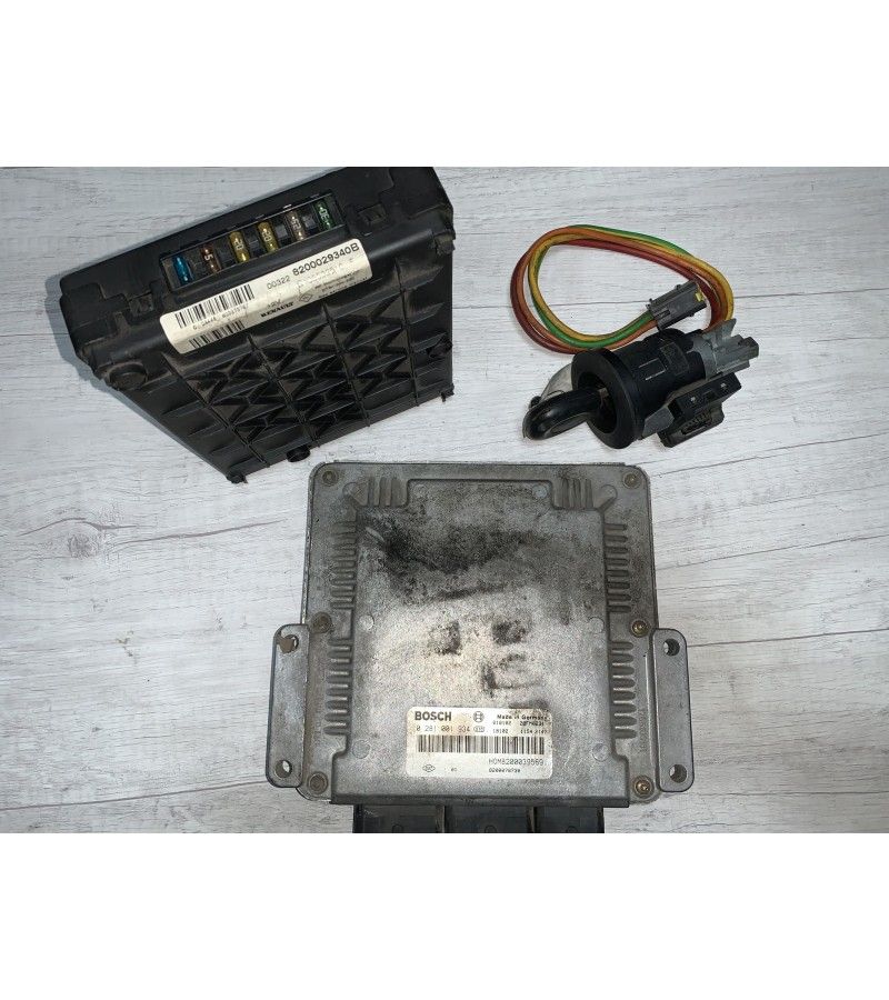 Este conjunto se compone de UCH con referencia 8200029340B, centralita motor Bosch 0281001934 y bombín de arranque con una llave.